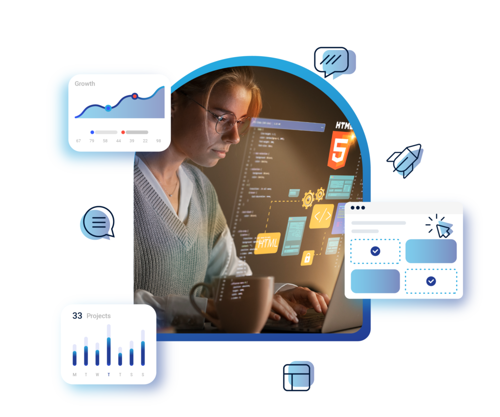 We deliver seamless and intuitive user experiences through secure, scalable web solutions tailored to your business. Our innovative team handles every aspect—from eye-catching front-end design to robust back-end programming—ensuring your website not only looks great but performs flawlessly.